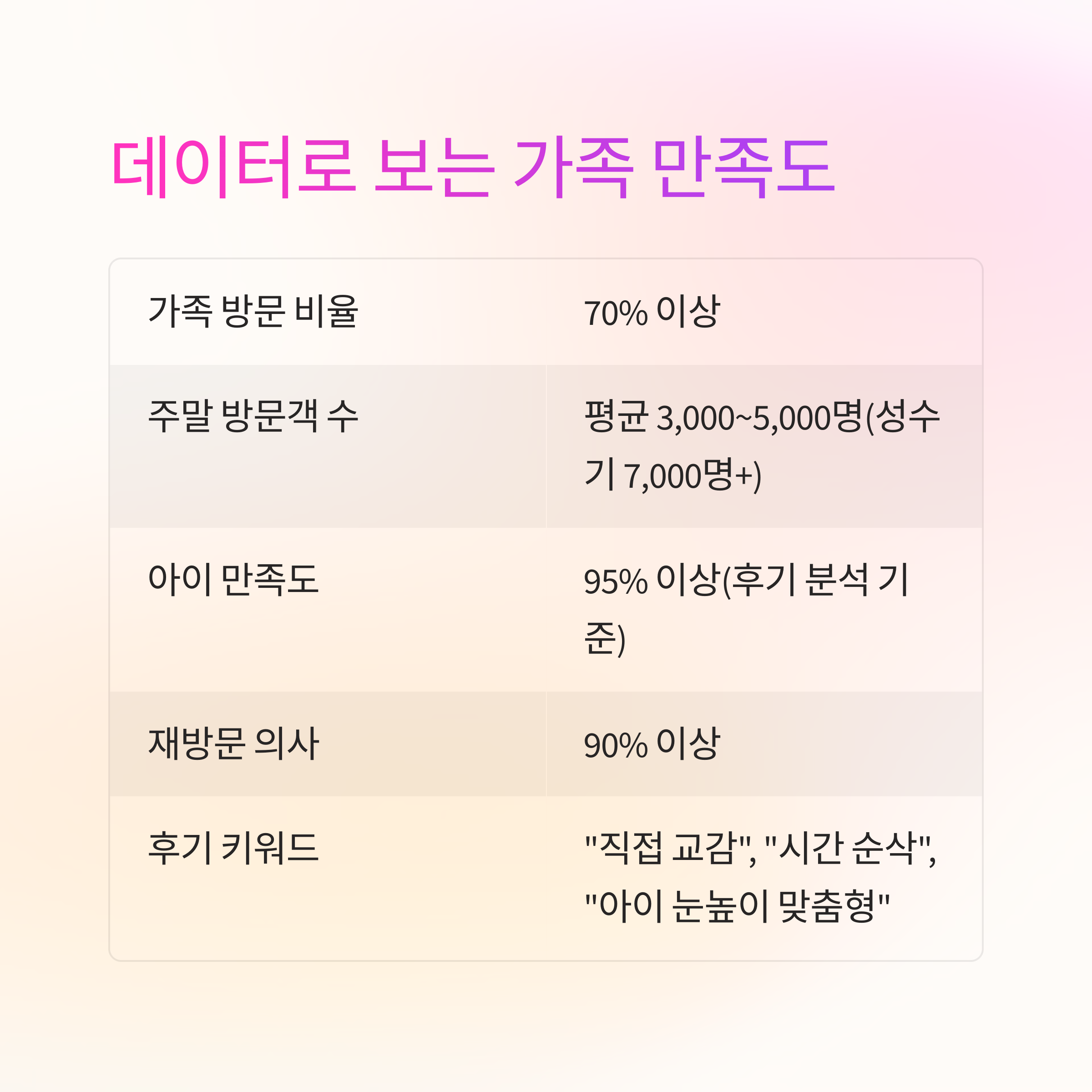 | 아이 만족도 | 95% 이상(후기 분석 기준) |