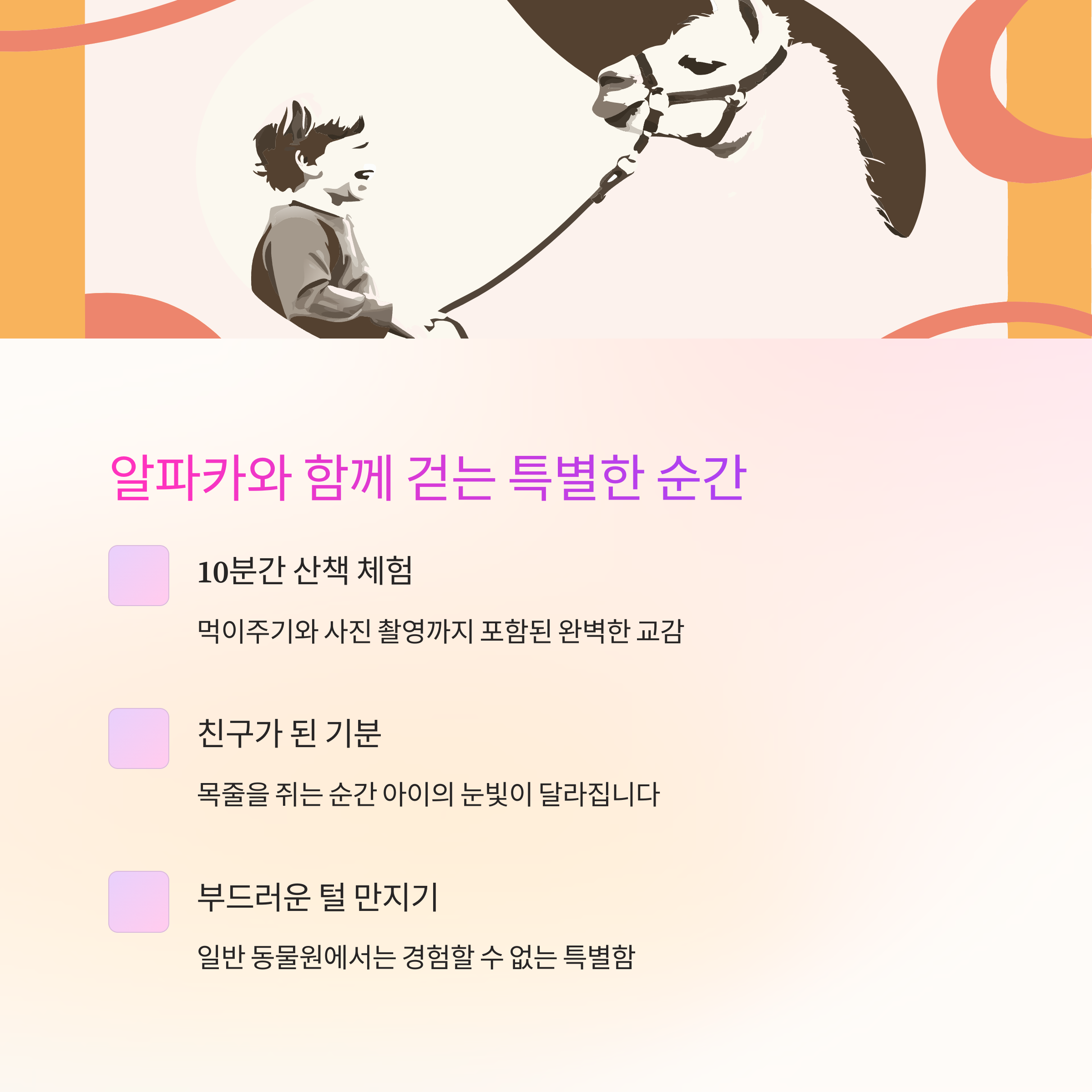 1. ‘알파카와 함께 걷는 체험’, 아이들에게 잊지 못할 순간