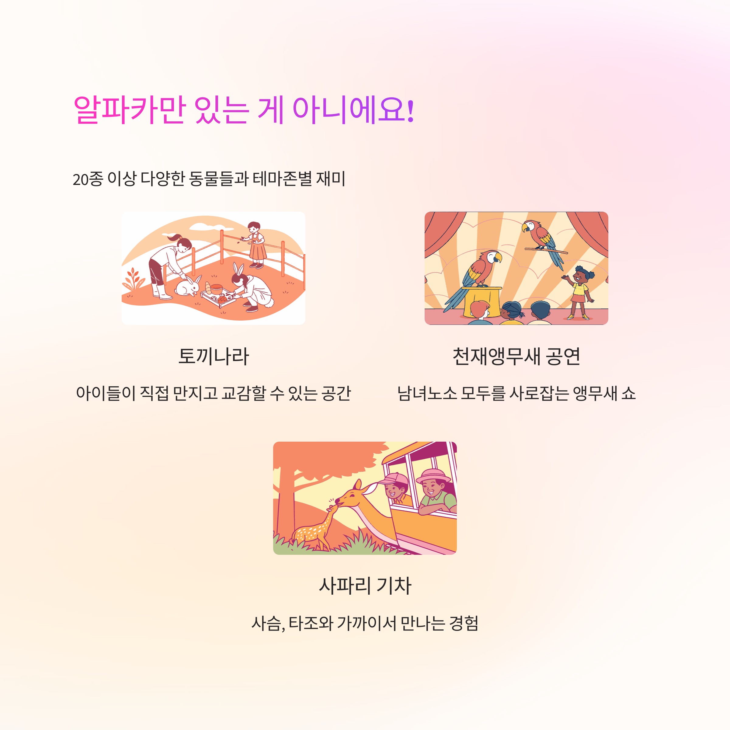 - 포니·염소·타조·사슴 등 아이 눈높이에 맞춘 동물들