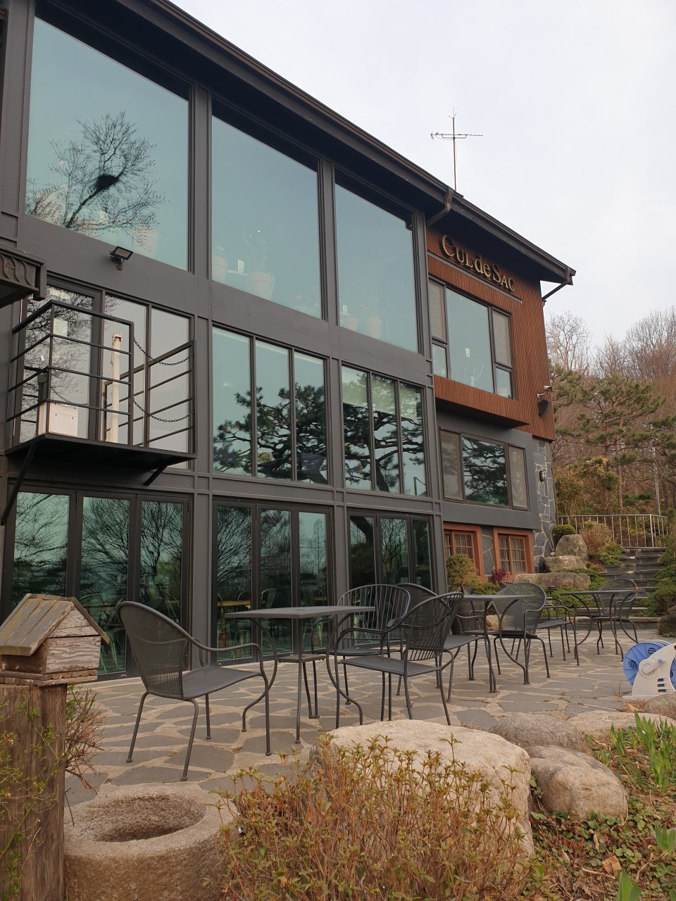1층은 커피와 디저트, 2층은 야외석, 3층은 레스토랑으로 구성되어