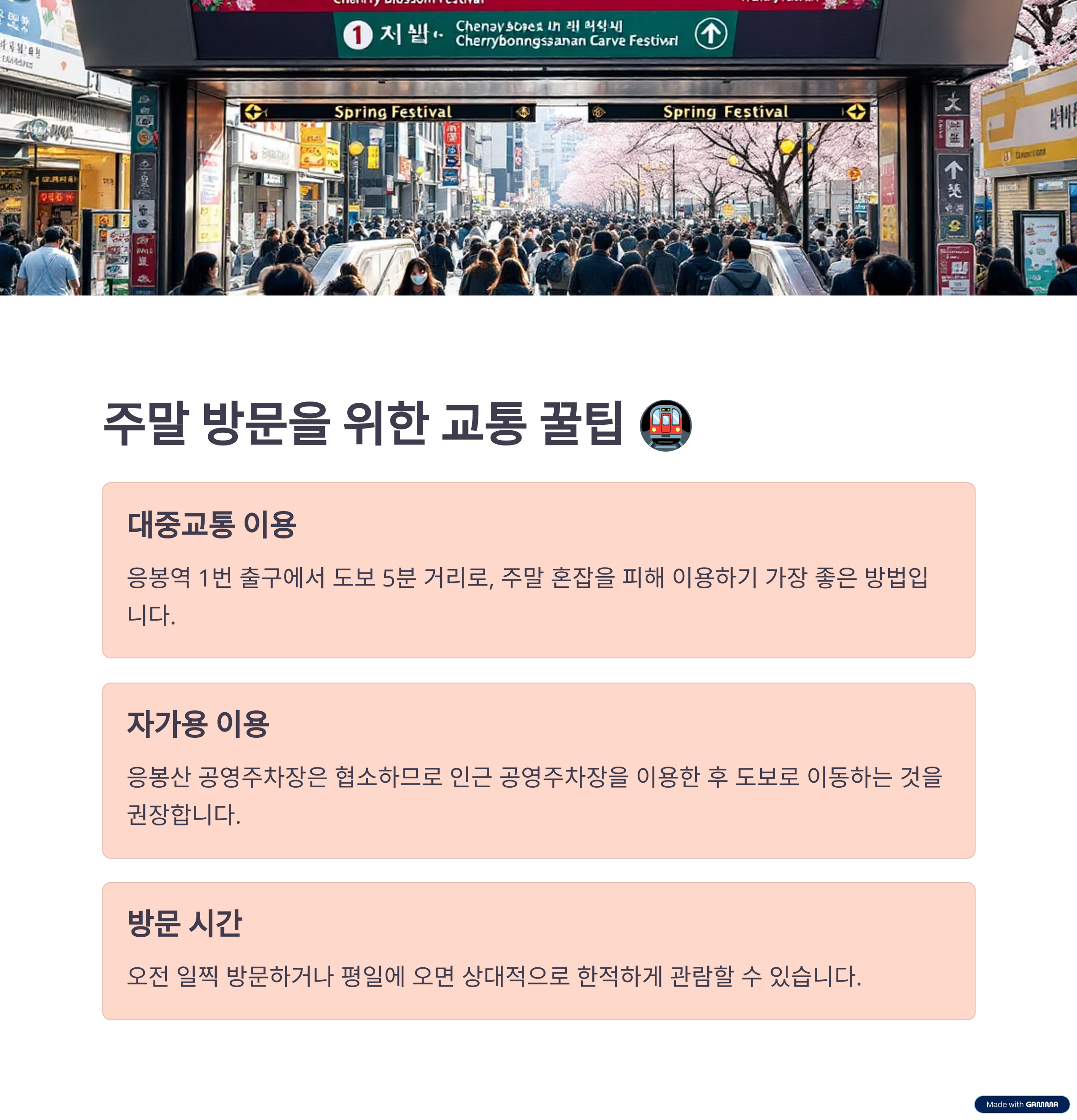 축제 기간엔 차량 진입이 어려우니 지하철 추천! 🚇