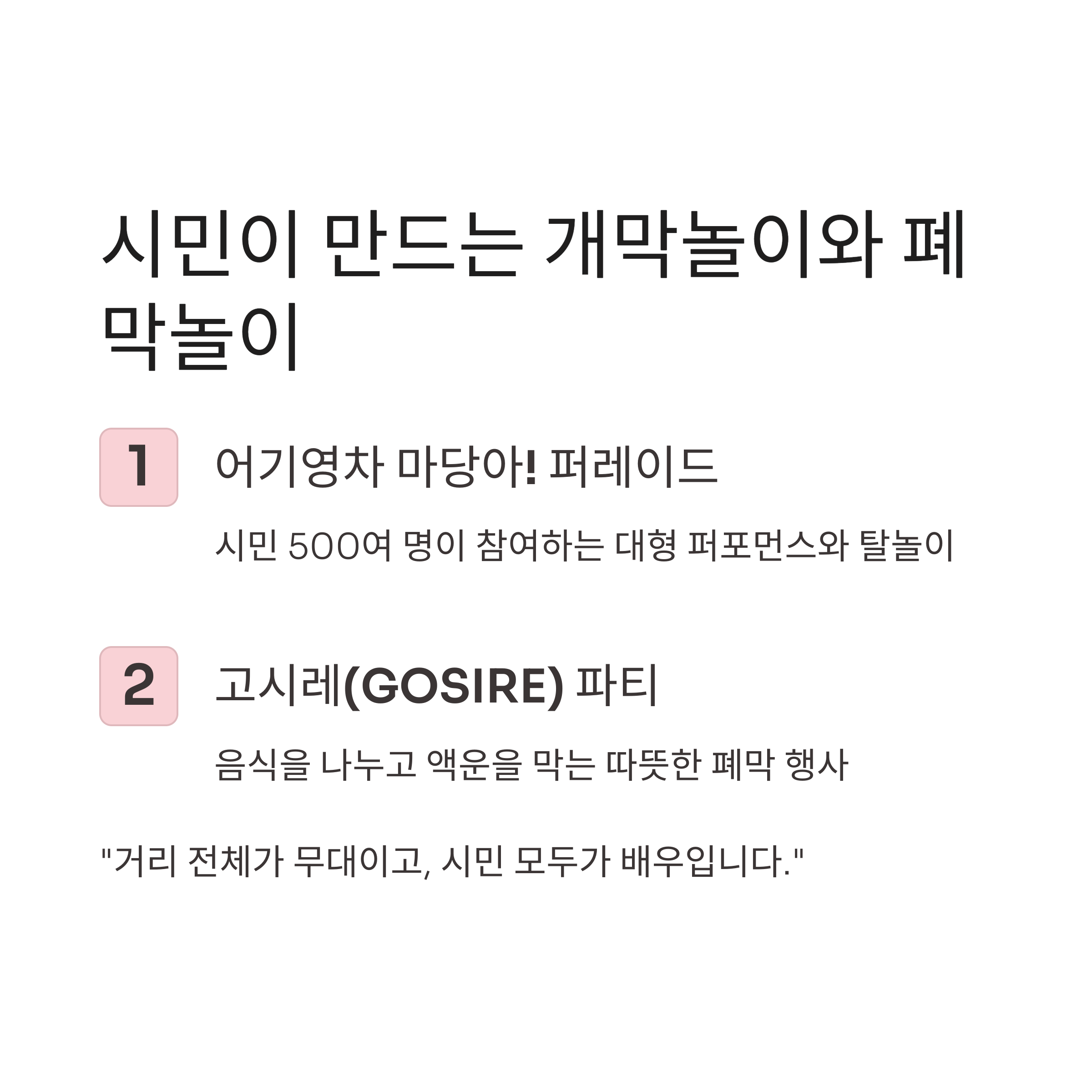 3일간 진행되는 마당의 축제, 올해의 프로그램은 다양성과 시민 참여 중심으로 구성됩니다.