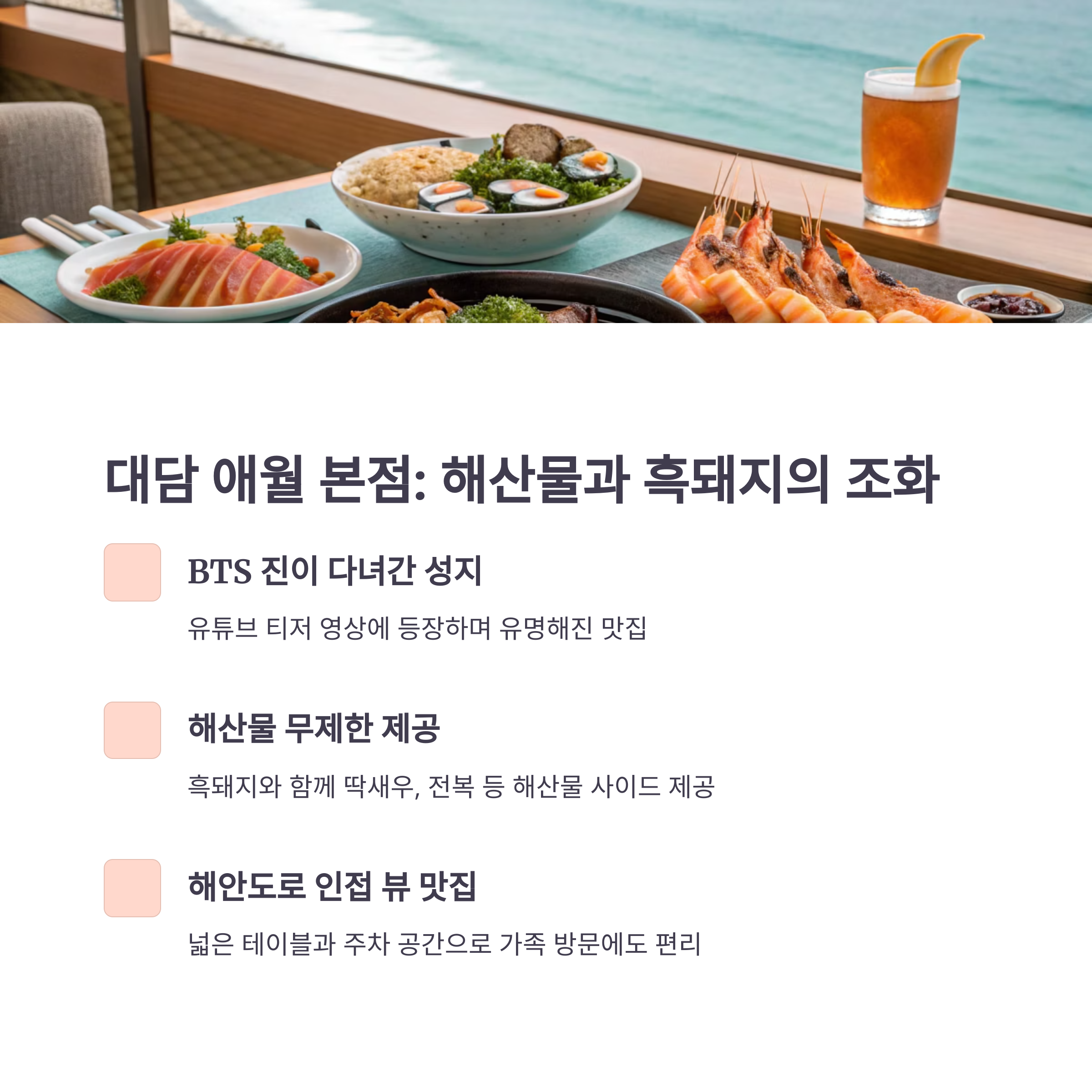 대담 애월 본점: 해산물과 흑돼지의 미친 조화
