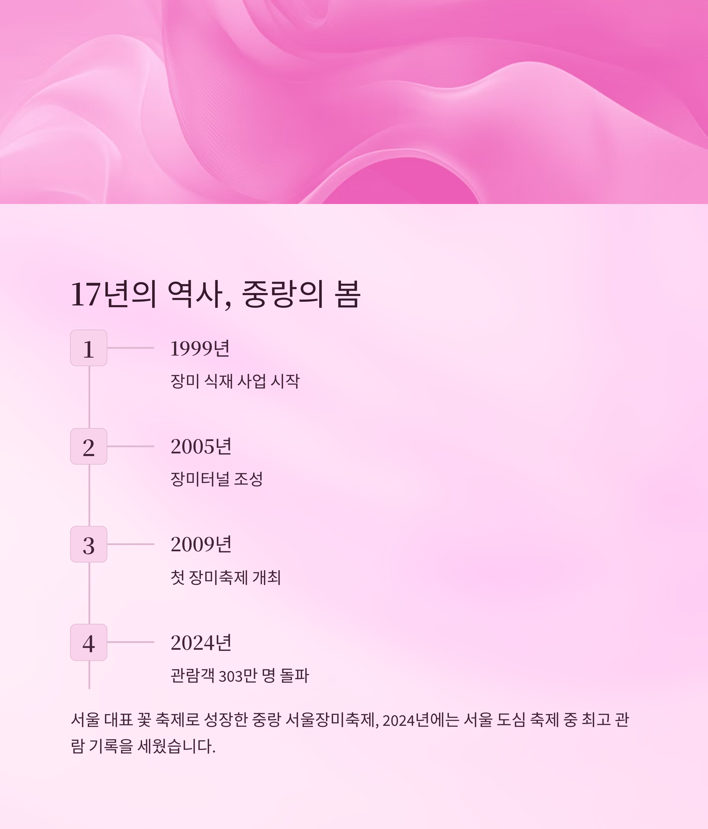 중랑 서울장미축제는 매년 5월, 서울의 봄을 가장 아름답게 만드는 대표 행사로 자리 잡았습니다.
