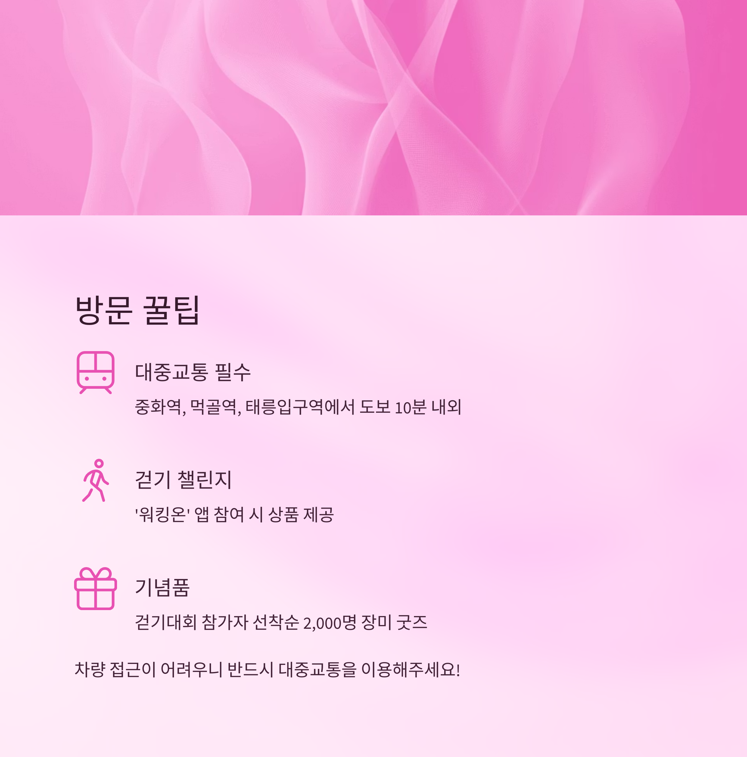 - 기념품/경품: 걷기대회 참가자 선착순 2,000명 한정 장미 굿즈 제공