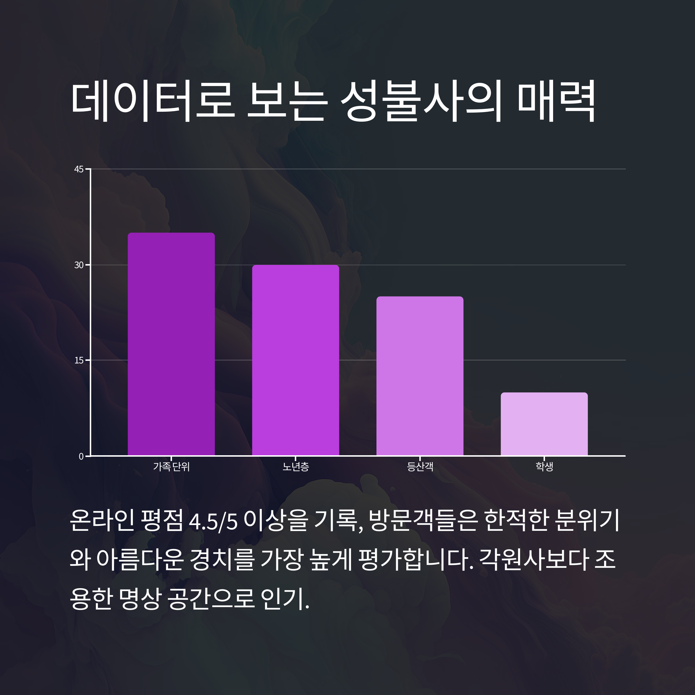 성불사는 2024년 기준 연간 약 3만 명의 방문객이 찾았습니다.
