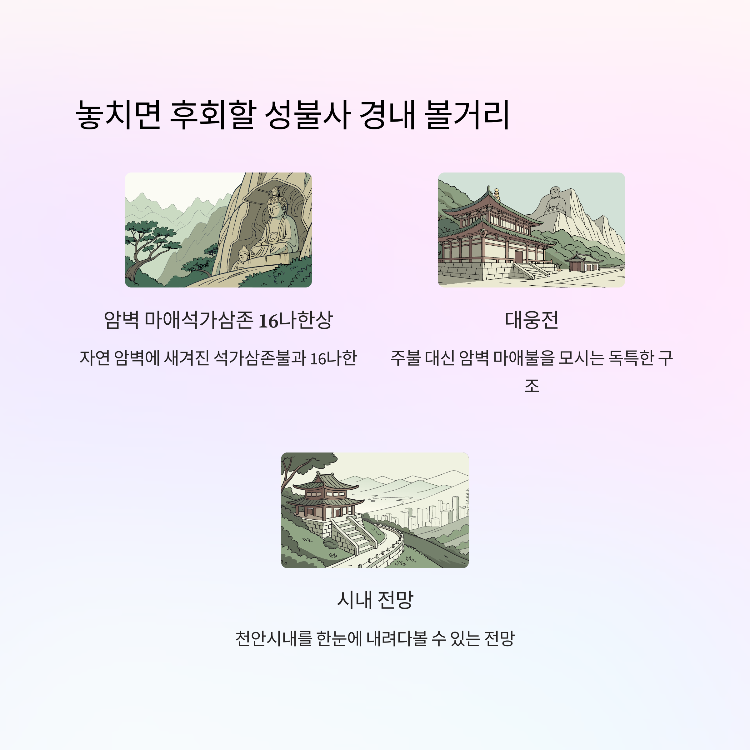 전국 주요 사찰들과 비교해도 성불사는 독특한 매력을 지니고 있습니다.