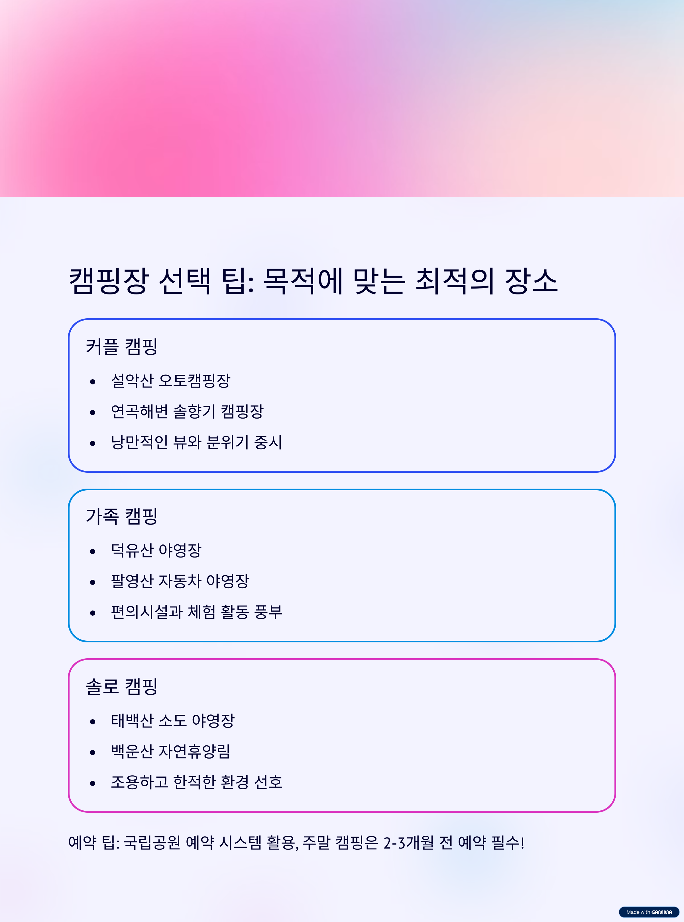 결론 및 캠핑장 선택 팁