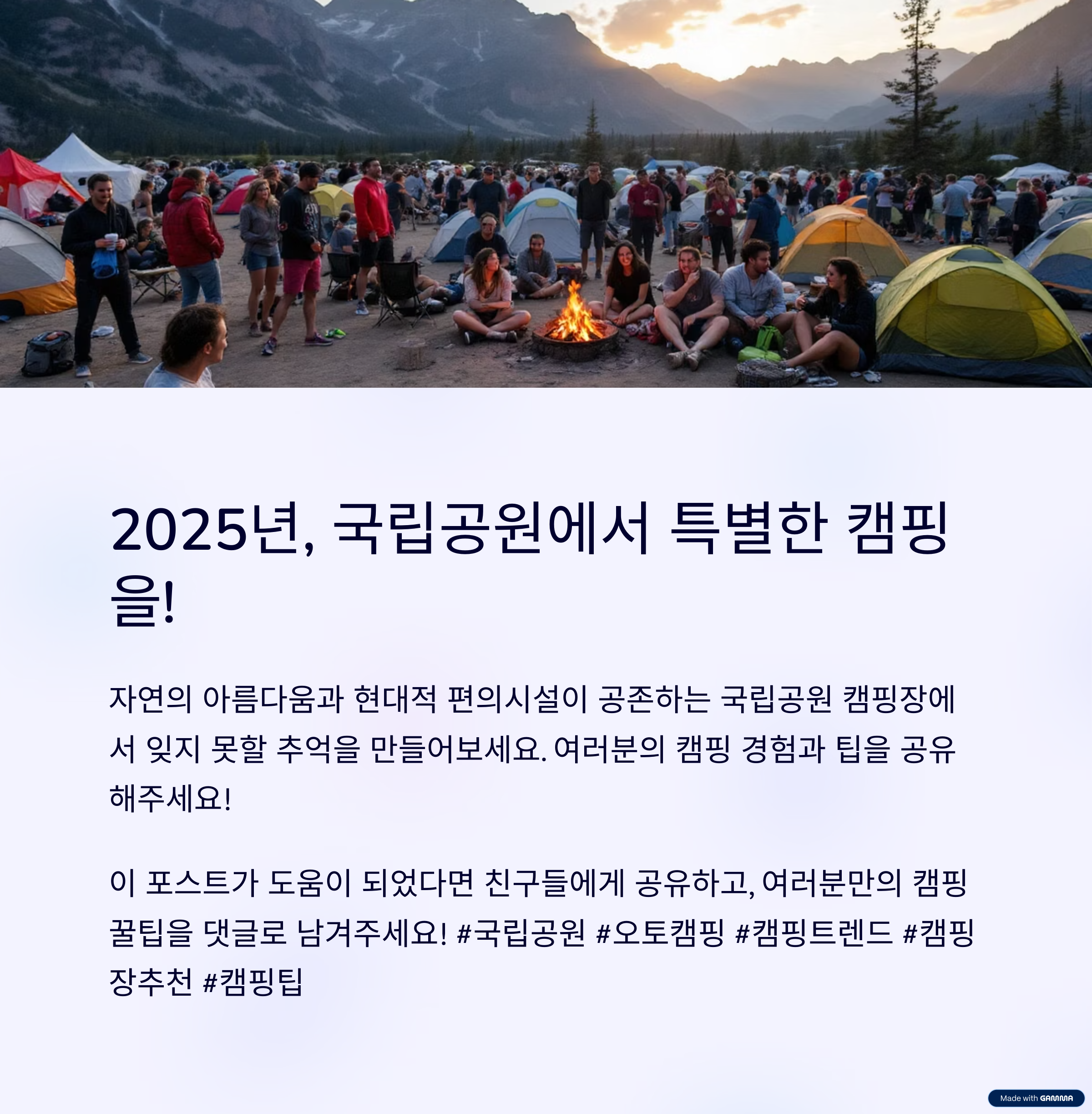 "2025년에도 자연 속에서 안전하게, 그리고 의미 있게 캠핑하세요!" 🌿
