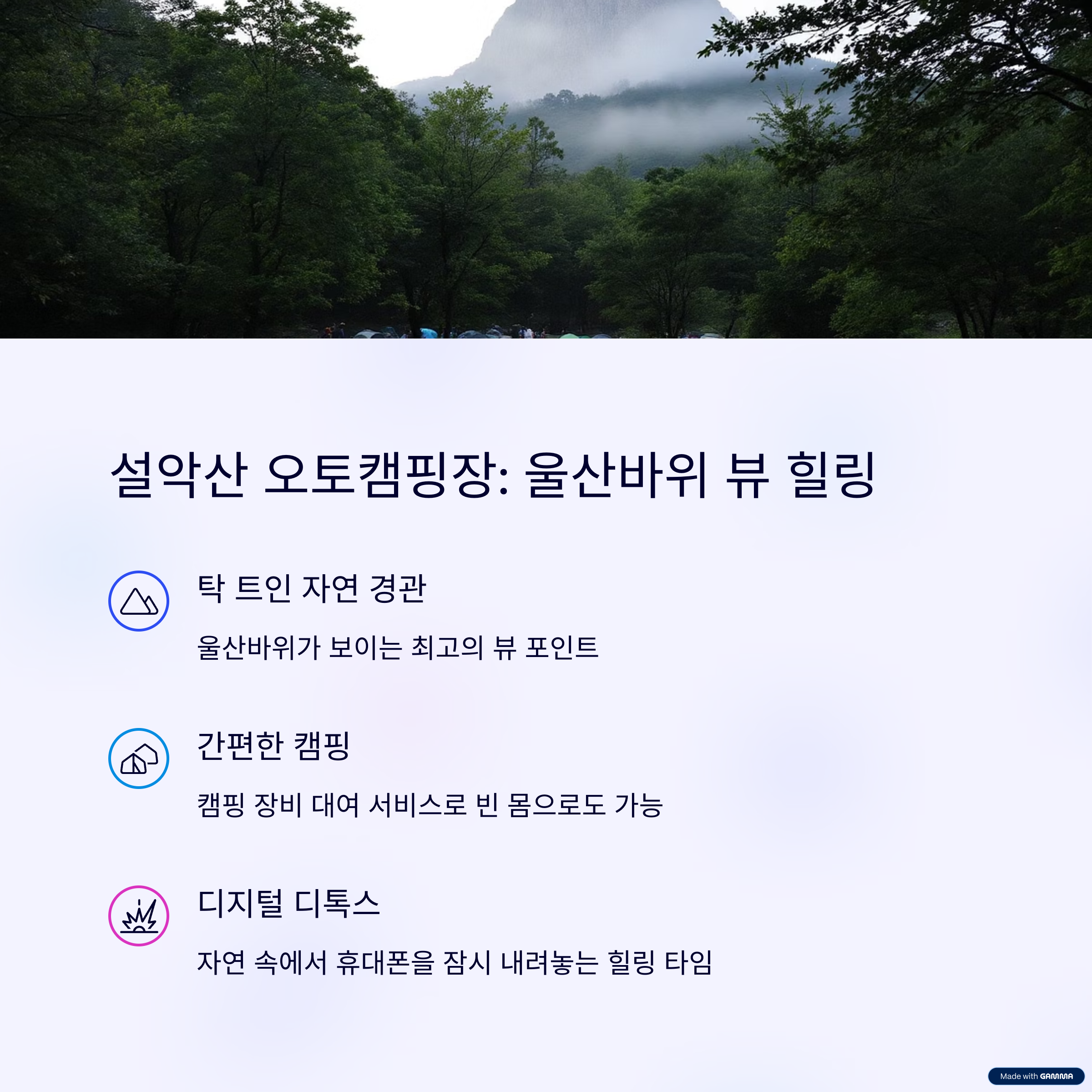 설악산의 절경을 감상하며 캠핑할 수 있는