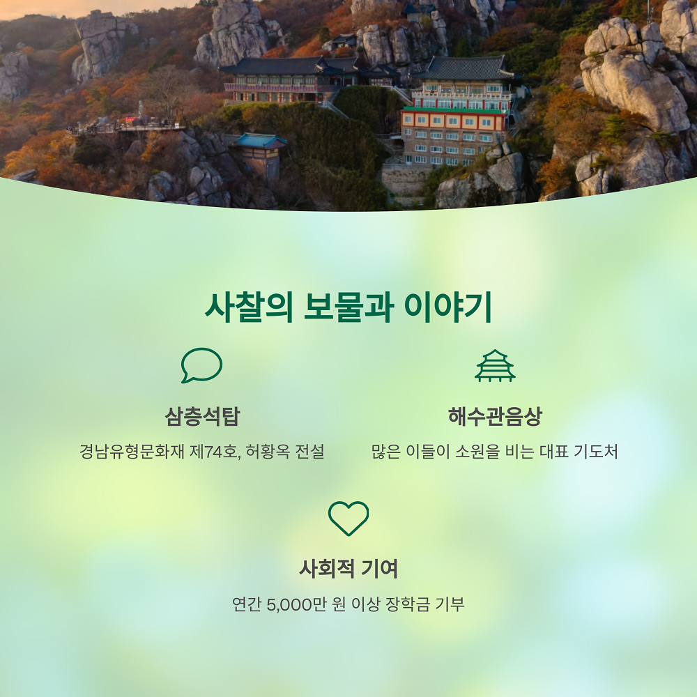 보리암은 단순한 종교 공간을 넘어 연간 5,000만 원 이상을 장학금으로 기부하며