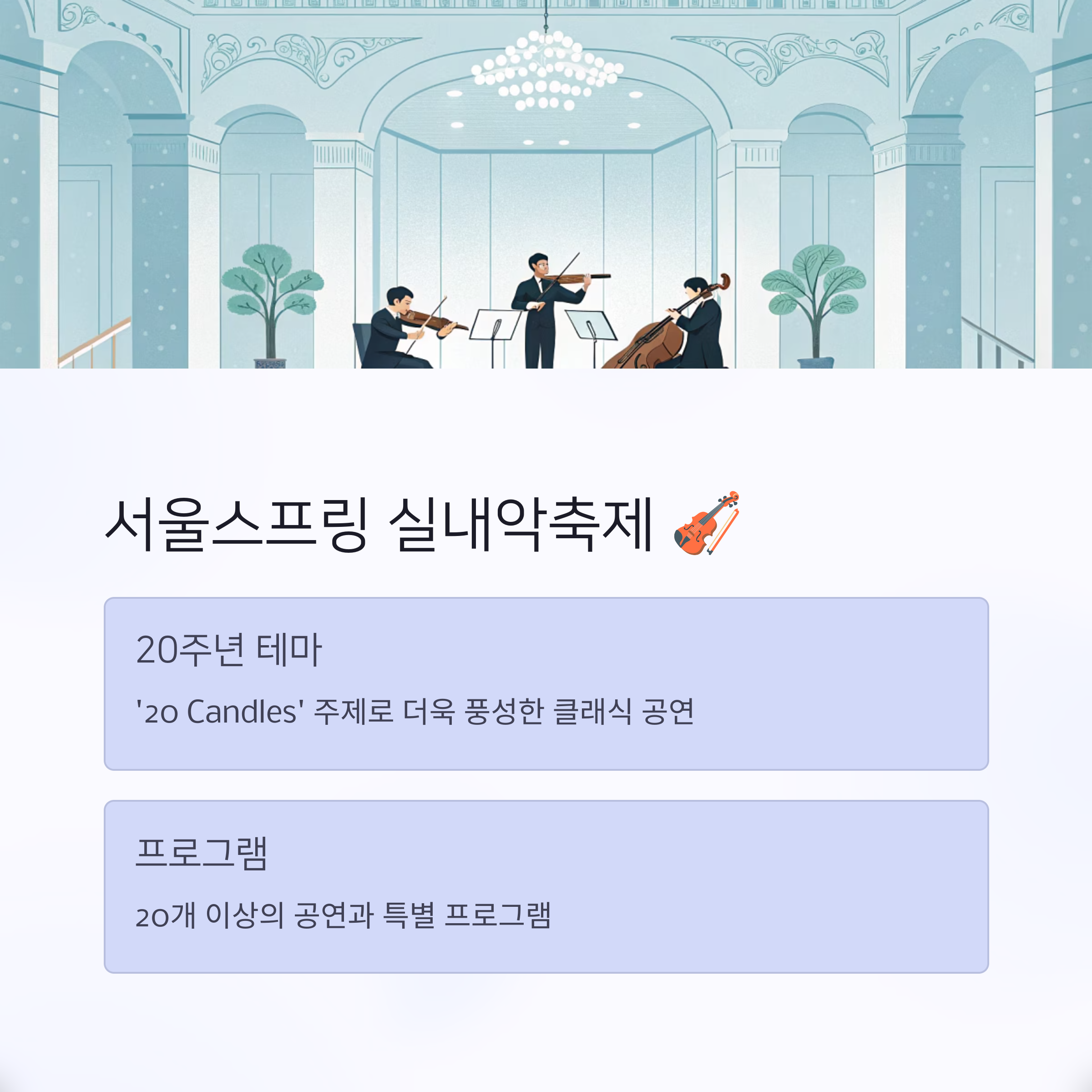 20개 이상의 공연과 특별 프로그램이 열리며, 클래식 팬들의 마음을 설레게 하죠.
