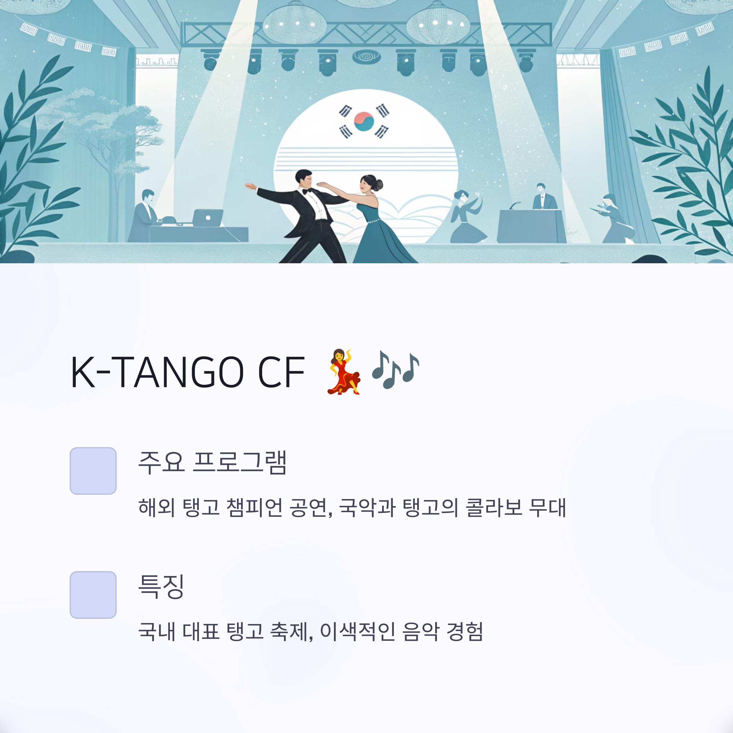 해외 탱고 챔피언 공연뿐 아니라 국악과의 콜라보 무대까지 준비되어