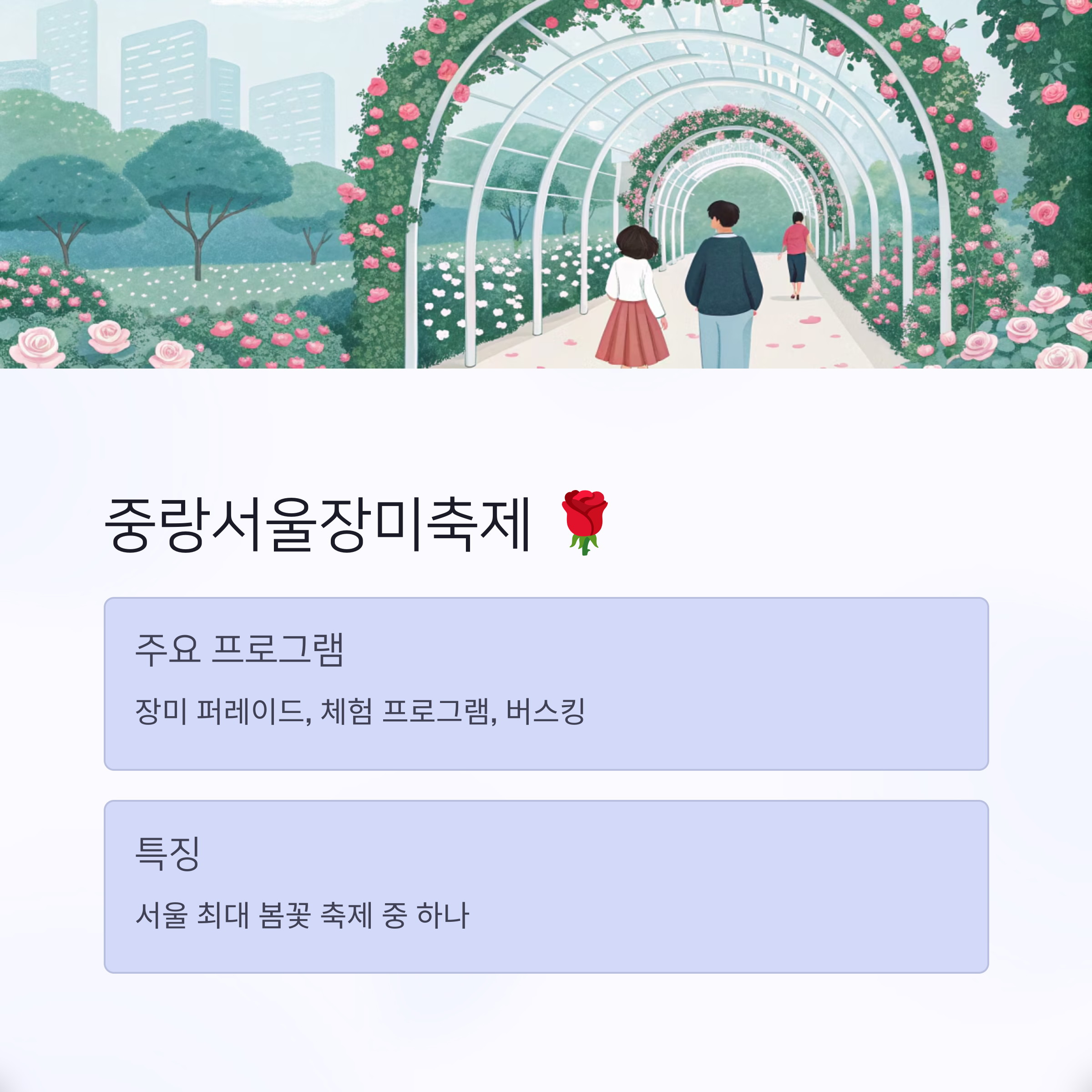5월 16일부터 24일까지 중랑장미공원에서 열리며,