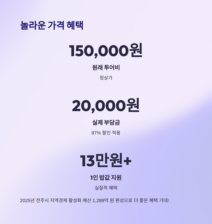 "단 2만 원으로 전주 한복판을 통째로 맛볼 수 있는 기회, 이번 기회를 절대 놓치지 마세요."